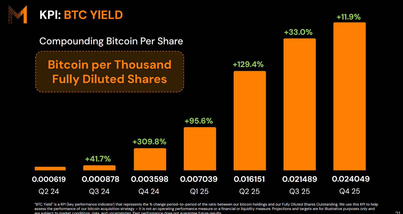 BTC Yield (the annual growth rate of Bitcoin per share) reached 568%.