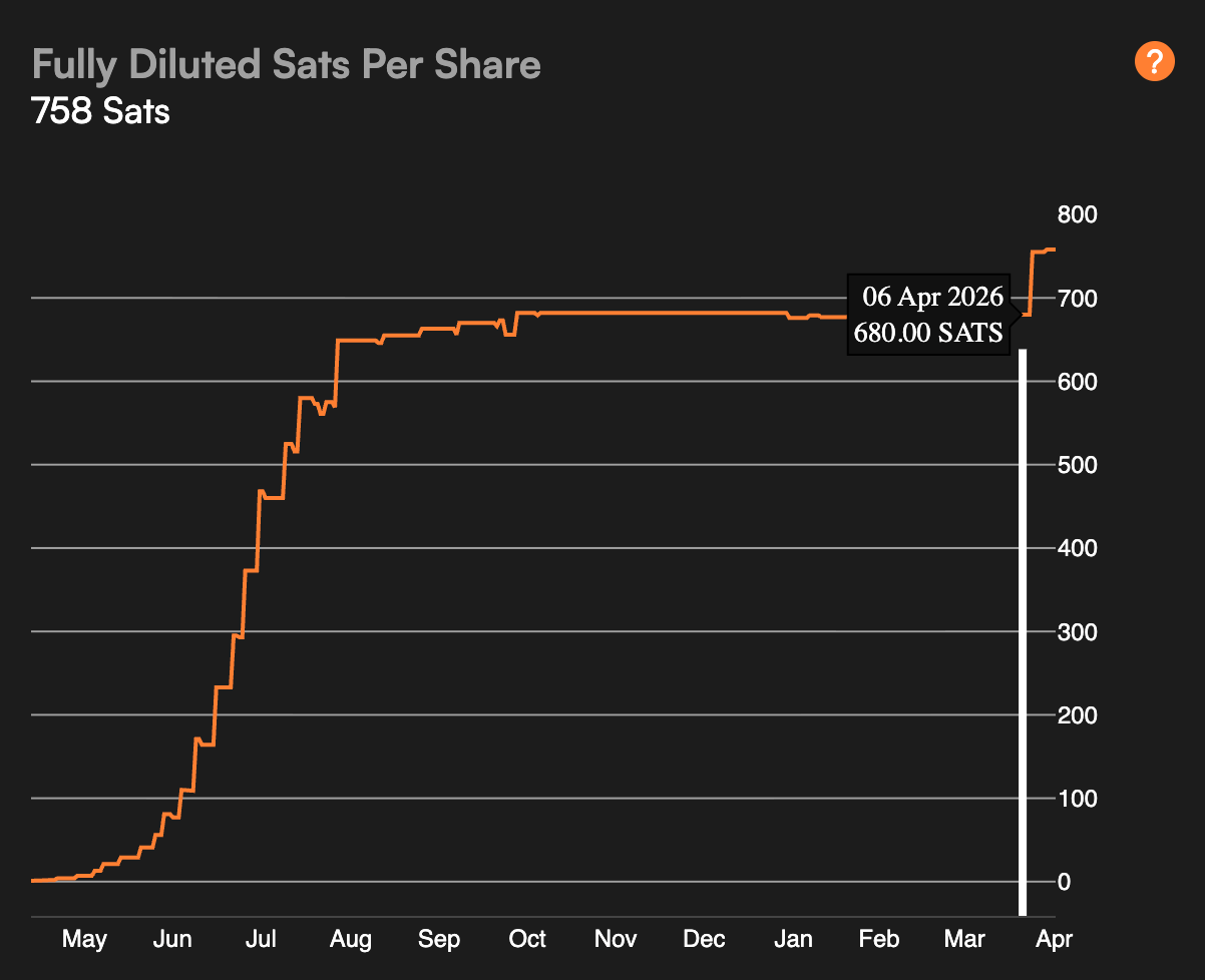 So when management says Satoshis per share increased from 680 to 755, it means each fully diluted share now represents more Bitcoin exposure than before.
