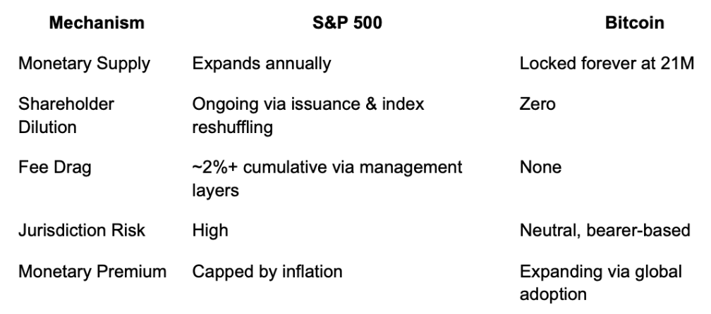 A Structural Headwind: Bitcoin Doesn’t Dilute Equities Must