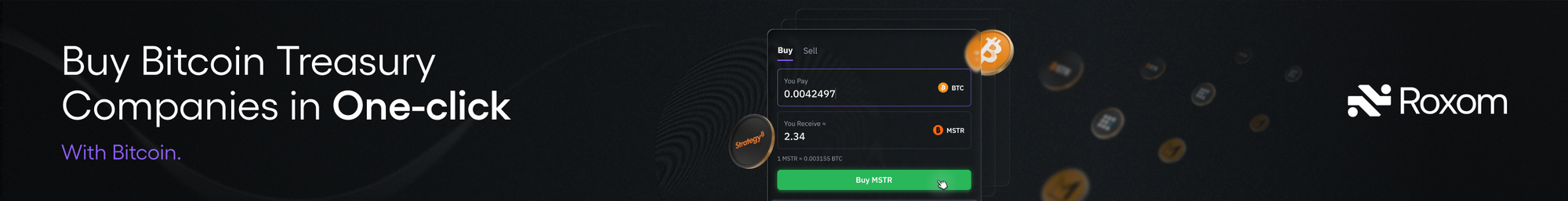 When reviewing BitcoinTreasuries.net company pages, users will now see Roxom-powered “Buy” links next to selected Bitcoin Treasury Companies. From balance sheet analysis to order flow, it’s now one click.